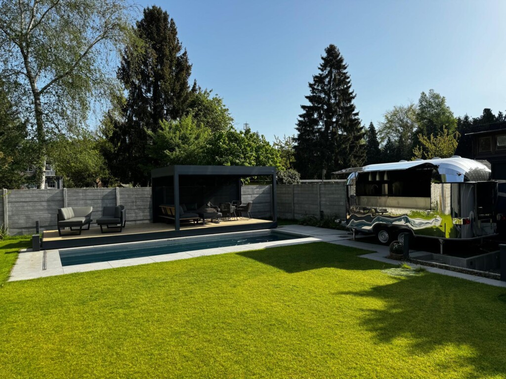 Ganzjährig nutzbarer Edelstahlpool mit exklusivem Pooldeck in Hamburg – als hochwertige Referenzanlage nach Terminvereinbarung besichtigbar.
